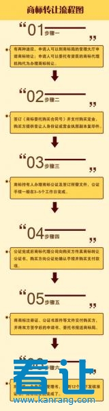 每个公司都会有自己的商标,毕竟再小的公司也是会建立自身的品牌的,拥有一个好记好看的商标是一件很重要的事情。但是往往有的公司想要注册商标的时候发现已经被注册过了,这就比较尴尬了,自己想了好久的商标发现已经被注册了,但其他的商标又没有自己很喜欢的那怎么办呢?这个时候其实可以看看这个商标有没有被转让,说不定原来的人不想要这个商标正准备进行商标转让呢?这个好机会一定不能错过,因此对于商标转让流程你一定要知道!那下面就由看让网络来为您介绍一下商标转让流程,帮助您得到想要的商标。